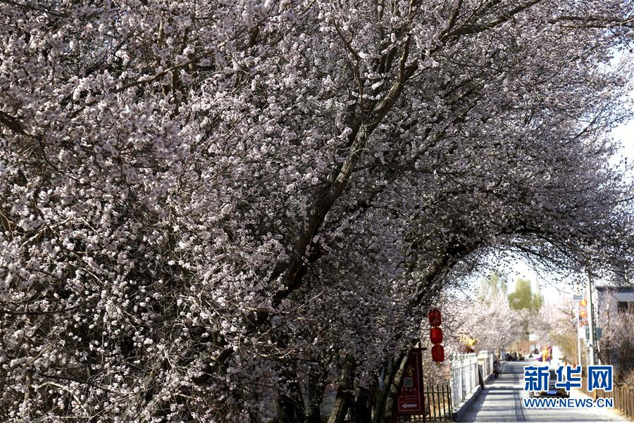 4月4日,在甘肃省敦煌市月牙泉镇月牙泉村,一辆汽车行驶在乡间路上。 近日,鸣沙山下的甘肃省敦煌市月牙泉镇的千亩李广杏花竞相绽放,吸引游客前来踏青赏花。 新华社发(张晓亮 摄)