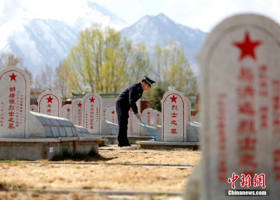 近日,西藏出入境边防检查总站及其各单位以多种形式向革命先烈表达缅怀和哀思。活动当日,西藏出入境边防检查总站组织50余名民警前往拉萨市革命烈士陵园开展祭奠英烈活动。全体民警在革命烈士纪念碑前整齐列队、庄严肃立,怀着崇高的敬意,向为西藏和平解放与社会发展建设献身的烈士敬献花圈并脱帽默哀。图为民警为无名烈士清扫墓碑。何宇恒 摄