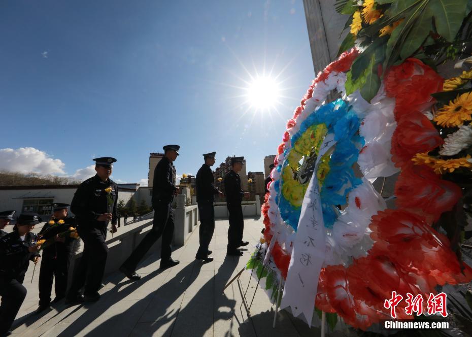 近日,西藏出入境边防检查总站及其各单位以多种形式向革命先烈表达缅怀和哀思。活动当日,西藏出入境边防检查总站组织50余名民警前往拉萨市革命烈士陵园开展祭奠英烈活动。全体民警在革命烈士纪念碑前整齐列队、庄严肃立,怀着崇高的敬意,向为西藏和平解放与社会发展建设献身的烈士敬献花圈并脱帽默哀。图为民警绕行瞻仰纪念碑,寄托哀思缅怀之情。何宇恒 摄