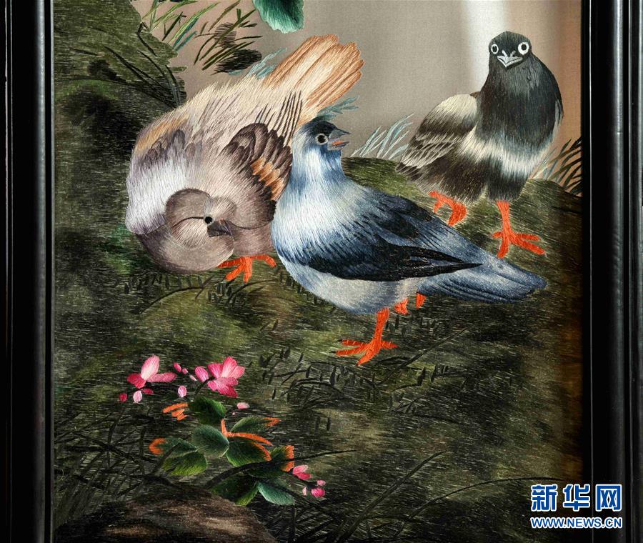 徐氏刺绣传承人刘玉霞刺绣作品局部图(4月4日摄)。徐氏刺绣2018年被列入石家庄市第七批非物质文化遗产名录。其传承人刘玉霞自幼随母学习刺绣技法,经过多年学习研究,刘玉霞在保留中国传统刺绣工艺的基础上,将西洋画、中国水墨画、摄影等艺术元素融入其中,形成独特的刺绣风格。新华社发(陈其保 摄)