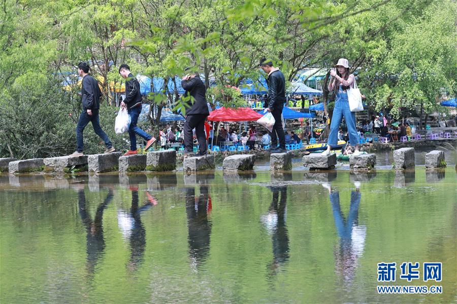 4月5日,游客在贵阳市花溪国家城市湿地公园黄金大道游玩。清明时节,贵州省贵阳市花溪国家城市湿地公园黄金大道春意盎然,吸引众多游人前来踏青游玩。 新华社记者 欧东衢 摄