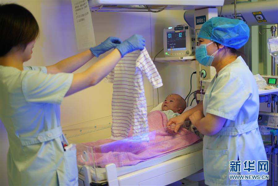 湖南省人民医院新生儿科护士给宏二准备了新衣服(资料照片)。新华社发(湖南省人民医院提供)