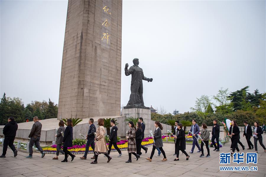 4月4日,人们绕南京雨花台烈士纪念碑一周,缅怀英烈。又是一年清明时。全国各地举行缅怀革命英烈主题活动,祭奠英雄、追思英烈,唤起人们内心深处的家国情怀。英雄志、忠骨魂。英雄精神指引我们不忘初心、砥砺前行。 新华社发(苏阳 摄)