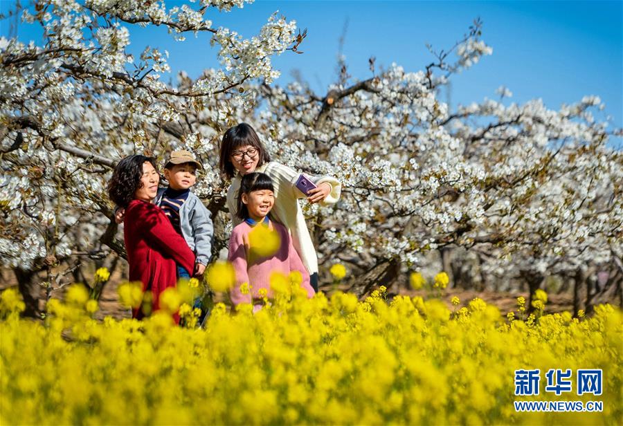 4月5日,游客在邯郸市魏县魏城镇东南温村千亩梨花园内踏青赏花。 清明小长假首日,众多游客来到河北省邯郸市魏县魏城镇东南温村千亩梨花园踏青游玩,休闲度假。 新华社记者王晓摄