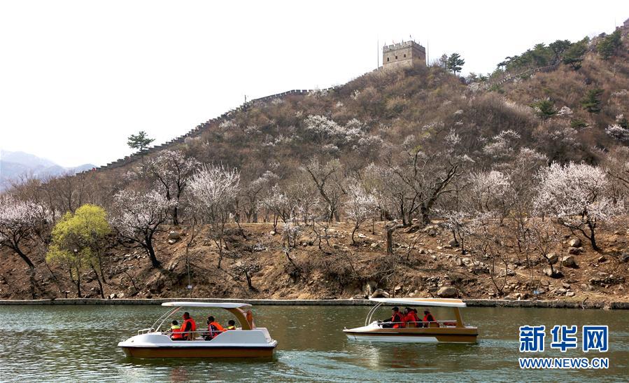 4月7日,游客在北京怀柔水长城旅游景区踏青赏花。清明时节,人们外出旅游,踏青赏花,感受春天的美好。 新华社发(卜向东 摄)