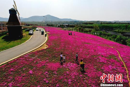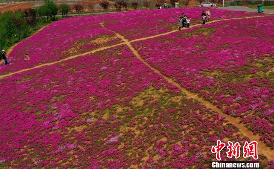 从空中俯瞰,漫山遍野,蔓延成一片粉艳花海,似红雪满地,美不胜收。 陈斌 摄