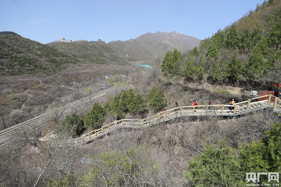 “花海栈道”和观景平台的修建既可以保障游客的人身安全,也方便游客近距离观赏“花海列车”。(央广网记者 韩靖 摄)