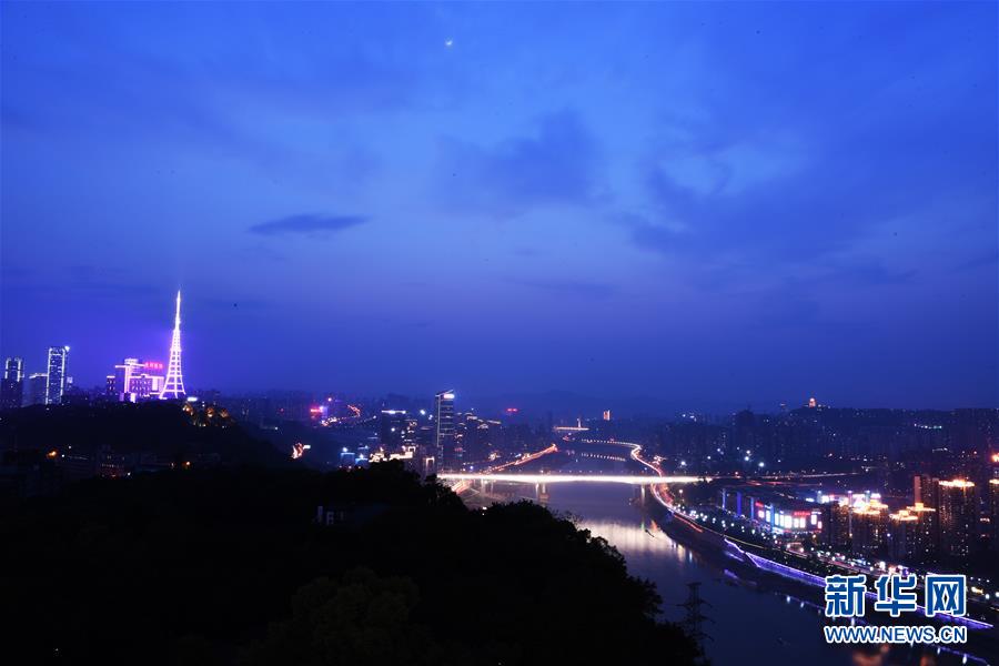 这是4月8日拍摄的重庆城市夜景。 千里为重,广大为庆。城在山水间、山水在城中,重庆颇具特色的立体城市景观是城市靓丽的名片。 新华社记者 王全超 摄