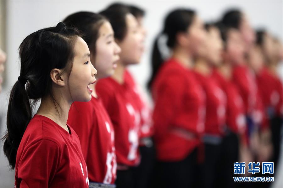 4月10日,在湖南省衡阳市艺术学校的练功房里,祁剧班的孩子随着老师的口令练习唱腔。 该祁剧班一共有40名学员,最小的10岁、最大的14岁,他们在这里经过6年的学习和训练后才能登台表演。祁剧是湖南传统地方戏剧种之一,于2008年入选第二批国家级非物质文化遗产名录。 新华社发(罗盟 摄)