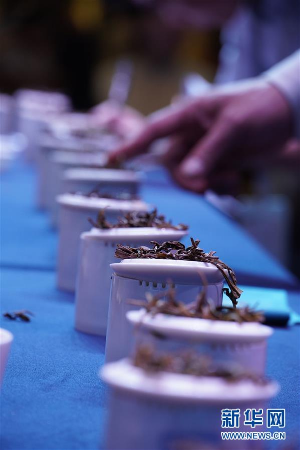 4月10日,茶叶评委在现场对参赛茶叶的叶底进行评判。 当日,中国(广西)六堡茶斗茶大会在南宁举行,来自广西各地的180多个六堡茶样品参加比赛,现场就茶叶的形状、紧松度、色泽、净度、汤色、香气、滋味、叶底八个方面进行比拼。 新华社发(喻湘泉 摄)