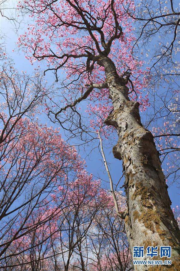 四川省江油市大康镇旱丰村吴家后山,盛开的辛夷花与错落有致的树干、蓝天构成一幅画卷(4月9日摄)。 新华社记者 江宏景 摄