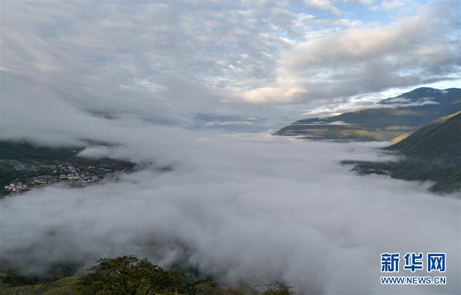 这是云海笼罩的墨脱县(4月9日摄)。4月9日清晨,从雅鲁藏布江峡谷涌起的云海将墨脱县笼罩,宛若仙境。墨脱,藏语意为“莲花秘境”,位于西藏东南部,地处雅鲁藏布江下游、喜马拉雅山脉东端南麓。独特的地理环境造就了墨脱气象万千的自然景观。新华社记者 李鑫 摄