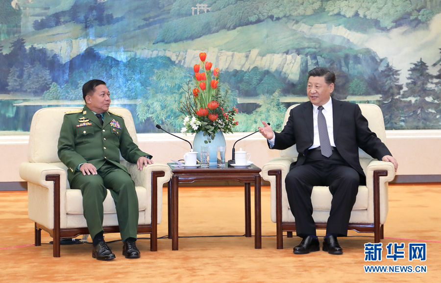 习近平会见缅甸国防军总司令敏昂莱