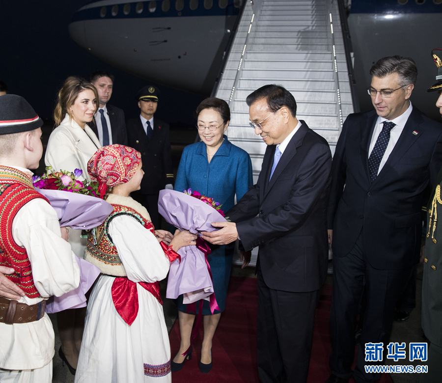 李克强抵达萨格勒布对克罗地亚进行正式访问并将出席第八次中国-中东欧国家领导人会晤
