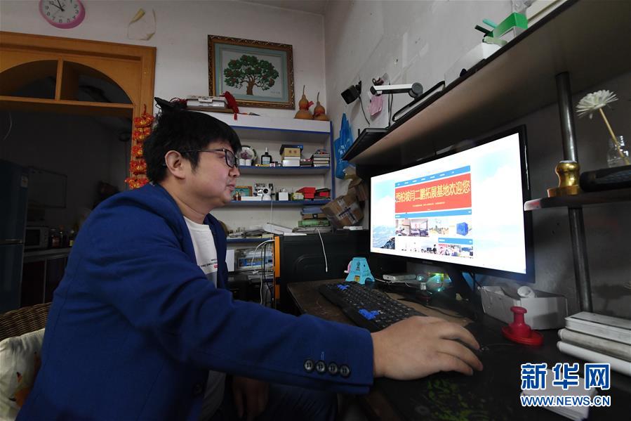 4月9日,闫二鹏在浏览网页。看准了西柏坡村的旅游业前景,“80后”大学生闫二鹏2005年回到家乡,接过了家里的旅馆生意。新华社记者朱旭东摄