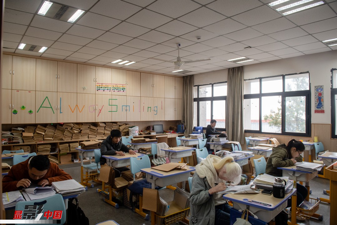 借助仪器,有的学生能看清试卷上的题目,而有的学生却只能把手当眼睛,使用盲文,用手来“读”一道道题。一张普通的试卷翻译成盲文,可能有接近二十页。新华网 李相博摄