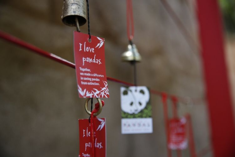 这是4月6日在美国圣迭戈动物园“大熊猫友谊墙”拍摄的祝福签。(新华社记者 李颖 摄)