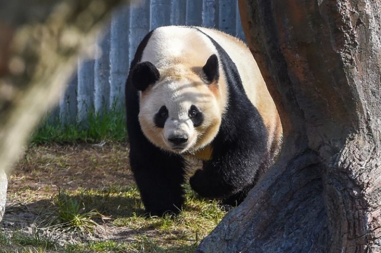 这是4月10日在丹麦哥本哈根动物园熊猫馆拍摄的大熊猫“毛二”。(新华社记者 郭晨 摄)