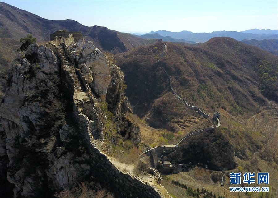 这是4月10日无人机拍摄的位于北京怀柔的响水湖长城自然风景区及周边的长城遗址。 北京怀柔响水湖长城自然风景区位于慕田峪西部,属明代长城。 新华社记者 张晨霖 摄