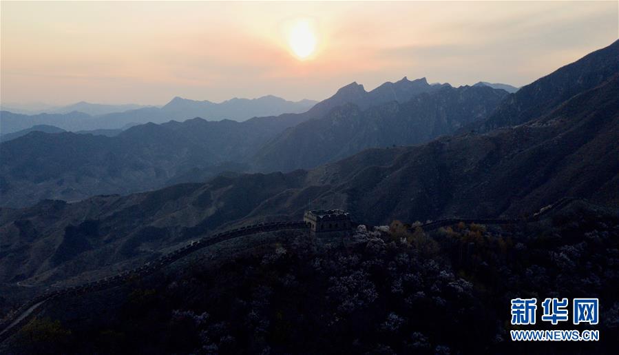 这是4月10日无人机拍摄的北京慕田峪长城。 慕田峪长城位于北京市怀柔区境内,距北京城区73公里,是明长城的精华所在。春天一到,长城两侧山花烂漫,景色格外迷人。 新华社记者 侯东涛 摄