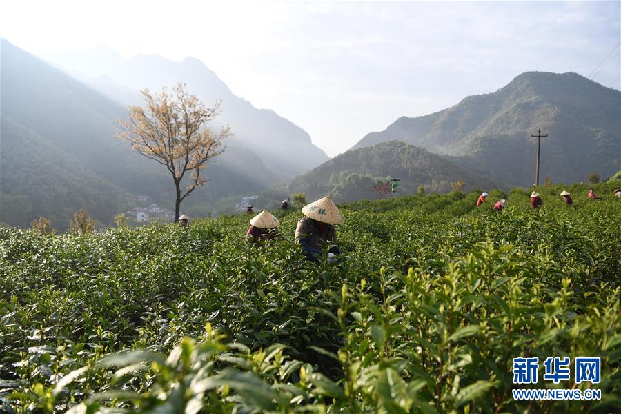 4月13日,茶农在汀溪乡生态茶园里采茶。 日前,安徽省泾县汀溪乡种植的汀溪兰香迎来全面开采期,茶园里一派忙碌景象。近年来,泾县汀溪乡依托生态优势,大力发展生态观光茶园,带动当地农民实现脱贫致富。 新华社记者 刘军喜 摄
