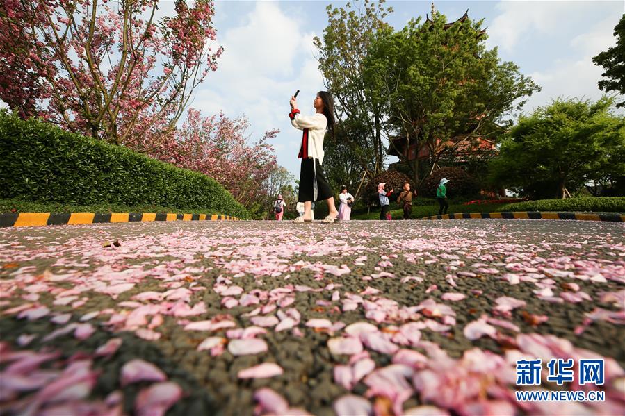 近日,贵州省毕节市大方县迎来樱花盛开的时节。奢香古镇里的数百株樱花灿烂绽放,吸引了市民和游客前来观花赏景。 奢香古镇是当地易地扶贫搬迁集中安置点,规划建设时,在古镇中心建设了12万平方米的“城市梯田”,种植玫瑰、茶树、樱花等观赏类植物,发展农旅结合的乡村观光旅游。