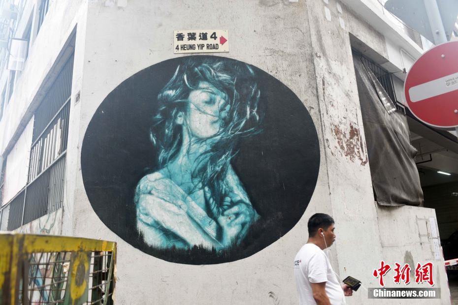 近年来,香港的城市景观悄悄发生了变化,缤纷多彩的涂鸦画开始出现在街头巷尾,在建物上肆意招展,引得过路行人忍不住停下脚步观赏,走入香叶道,再走至怡达工业大厦附近,有更多的壁画欣赏。中新社记者 洪少葵 摄