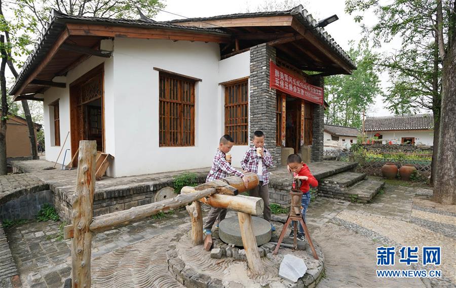 4月13日,小朋友在莺河村玩耍。 莺河村是湖北襄阳宜城市一个仅有551户、2231人的小村庄。2016年以来,莺河村紧抓美丽乡村建设契机,引导农民改造旧居,建设“莺河人家”,凸显“看得见山、望得到水”的风光定位,吸引四方游客。2018年,莺河村共接待游客20万人次。 新华社记者 程敏 摄