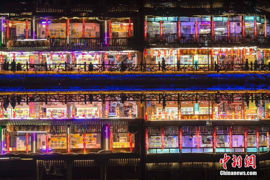 沱江河边五彩斑斓的商铺倒映在水中。杨华峰 摄