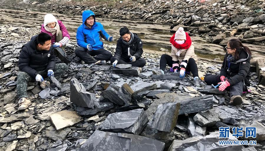2018年,西北大学地质学系的师生在湖北省宜昌市丹水河进行“清江生物群”化石挖掘。 新华社发(西北大学供图)