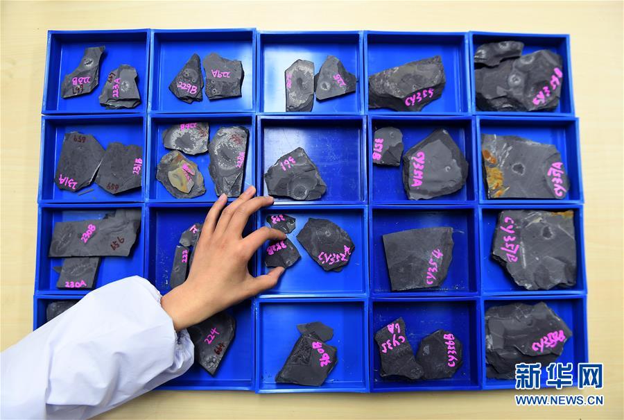 西北大学地质学系的学生在查找“清江生物群”化石(4月8日摄)。 新华社记者 刘潇摄