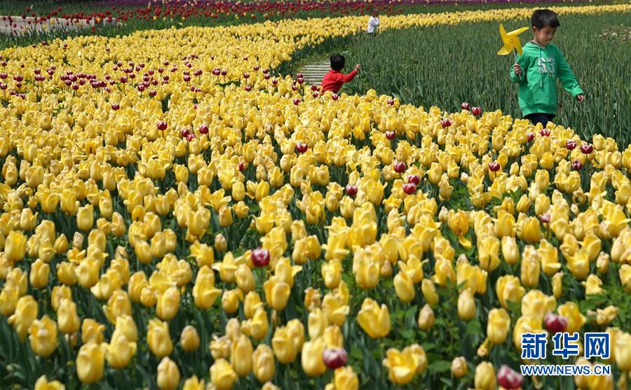 4月14日,游客在位于湖北省十堰市茅箭区的秦巴生态植物园内游玩。近日,位于湖北省十堰市茅箭区的秦巴生态植物园内,200万株郁金香竞相开放,吸引游客前来赏花游览。 新华社记者 程敏 摄
