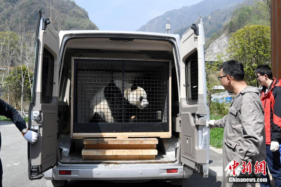 4月15日,中国大熊猫保护研究中心大熊猫“园园”从卧龙神树坪基地出发,启程前往奥地利,开展为期4年的科研合作。大熊猫“园园”将于北京时间16日凌晨4时45分从成都双流机场起飞,预计到达奥地利的时间是当地时间16日下午19时。安源 摄