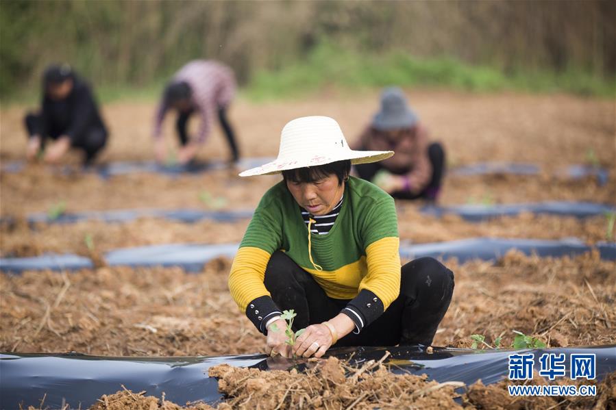 4月15日,在江西九江都昌县万户镇西湖村西瓜种植基地,人们栽种西瓜苗。暮春时节,在江西九江都昌县万户镇西湖村,鄱阳湖畔地膜纵横的瓜田如一条条“跑道”,当地农户运苗种苗,奔波在“跑道”上,一派繁忙的景象。新华社发(傅建斌 摄)