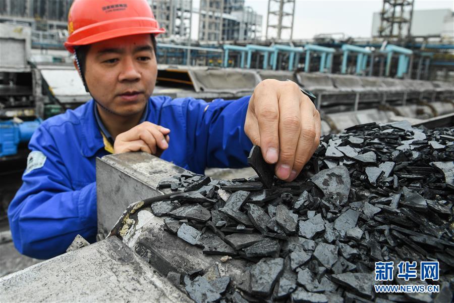 一名工作人员在国家能源集团鄂尔多斯煤制油分公司查看煤直接液化产生的附产品沥青(4月10日摄)。新华社记者 刘磊 摄
