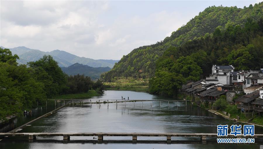 瑶里镇东埠村村民从村中的小桥上经过(4月16日摄)。 近日,江西景德镇市浮梁县瑶里镇东埠村在多日降雨后云开雾散迎来晴日,如画般的美景令人流连忘返。 新华社记者 周密 摄