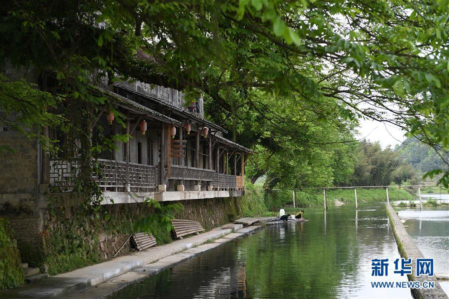 瑶里镇东埠村村民在河边洗衣服(4月16日摄)。 近日,江西景德镇市浮梁县瑶里镇东埠村在多日降雨后云开雾散迎来晴日,如画般的美景令人流连忘返。 新华社记者 周密 摄