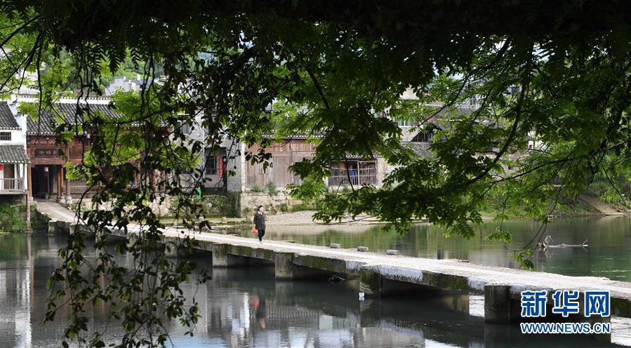 瑶里镇东埠村村民从村中的小桥上经过(4月16日摄)。 近日,江西景德镇市浮梁县瑶里镇东埠村在多日降雨后云开雾散迎来晴日,如画般的美景令人流连忘返。 新华社记者 周密 摄