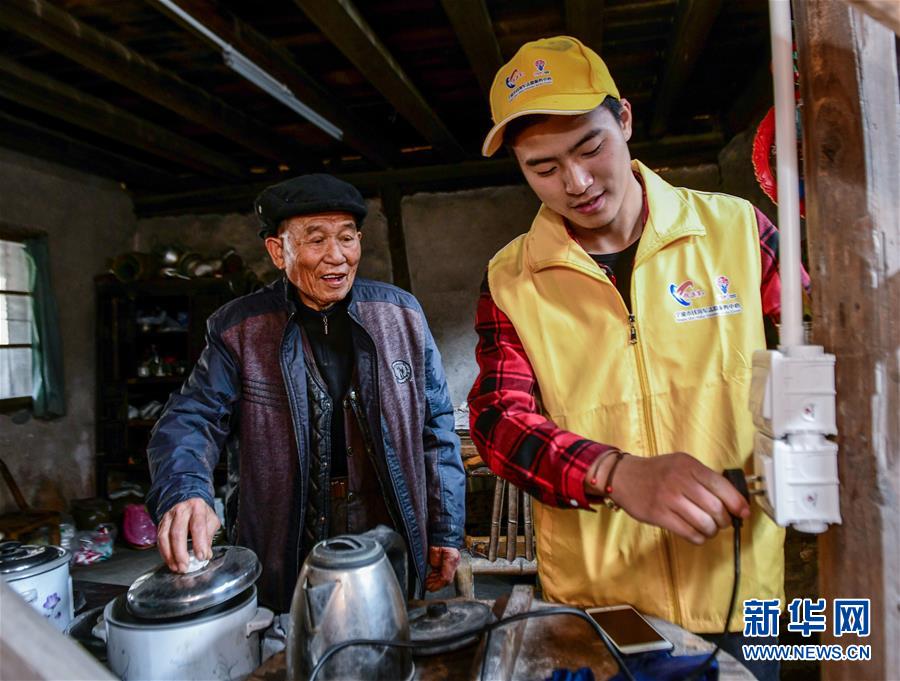 4月17日,志愿者在宁波市鄞州区董家跳村88岁的低保户黄阿福家为老人试用刚安装好的新线路和插座。