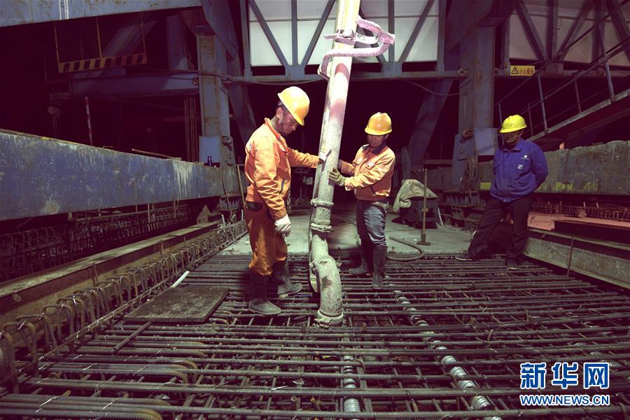 4月16日,中铁四局建筑公司施工人员在合龙现场作业。当日,由中铁四局建筑公司承建的合安高铁花岗特大桥跨206国道连续梁拱桥成功合龙,这是合安高铁全线最大的连续梁拱桥。合安高铁自新合肥西站引出,终至新安庆西站,设计时速350公里,预计2020年建成通车。新华社记者 刘军喜 摄