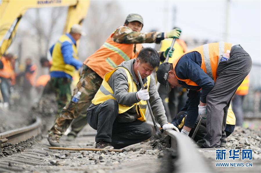4月17日,在中铁二十二局负责建设的米厂路改移工程现场,工人在进行拨移线路施工收尾作业。