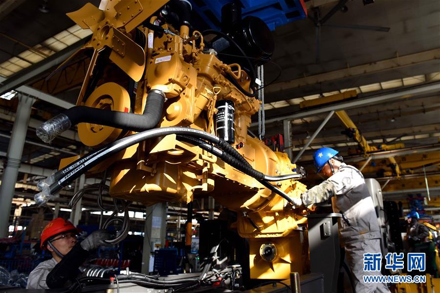 在山东临工工程机械有限公司,工人在装载机生产线作业(1月19日摄)。新华社记者 郭绪雷 摄
