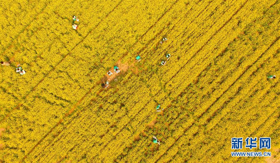 4月16日,在山东省茌平县杜郎口镇,学生们在油菜花田里写生(无人机拍摄) 。眼下正是齐鲁大地五彩缤纷的花开时节,农民花田劳作,游客花海徜徉,处处洋溢着浓浓春色。新华社发(赵玉国 摄)
