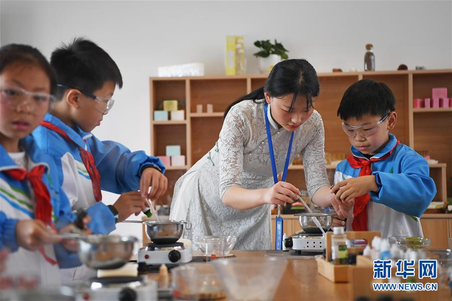 在金溪县“香谷小镇”,孩子们在工作人员的指导下体验手工制作香皂(4月18日摄)。近年来,江西省金溪县立足当地香精香料特色产业,以“芳香产业+古香文化+清香生态”发展理念打造香精香料产业聚集基地“香谷小镇”。据了解,“香谷小镇”总规划占地面积4300亩,是一个集原材料种植、检测、文创、研发、展示、贸易以及旅游等多种功能于一体的特色小镇。 新华社记者 万象 摄