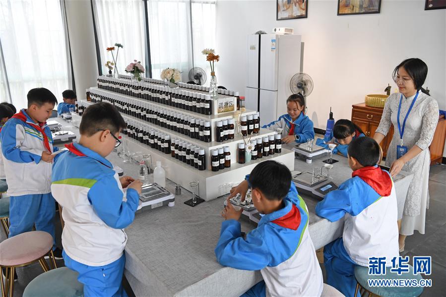 孩子们在金溪县“香谷小镇”体验用天然香精制作香水(4月18日摄)。近年来,江西省金溪县立足当地香精香料特色产业,以“芳香产业+古香文化+清香生态”发展理念打造香精香料产业聚集基地“香谷小镇”。据了解,“香谷小镇”总规划占地面积4300亩,是一个集原材料种植、检测、文创、研发、展示、贸易以及旅游等多种功能于一体的特色小镇。 新华社记者 万象 摄