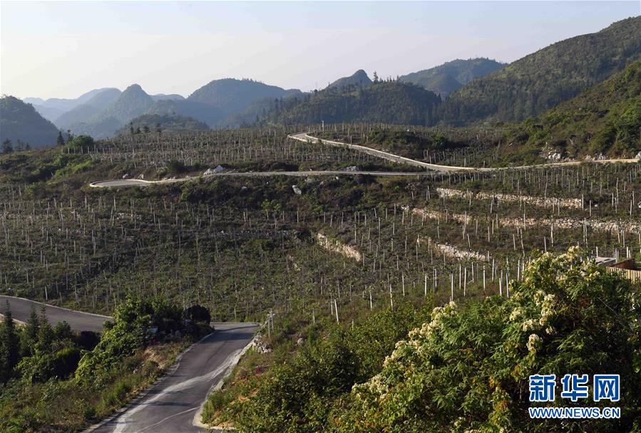 这是云南西畴县兴街镇三光片区的猕猴桃种植基地(4月18日摄)。云南省文山壮族苗族自治州西畴县兴街镇三光片区缺水少土,石漠化严重,经过当地干部群众多年治理,昔日石漠化山地成为梯田,生态环境得到了改善。2016年,在政府的支持下,文山浩弘农业开发有限公司在西畴县兴街镇三光片区投资发展绿色产业,流转综合整治好的近5000亩土地发展猕猴桃种植,带动周边农民脱贫增收。 新华社记者杨宗友摄