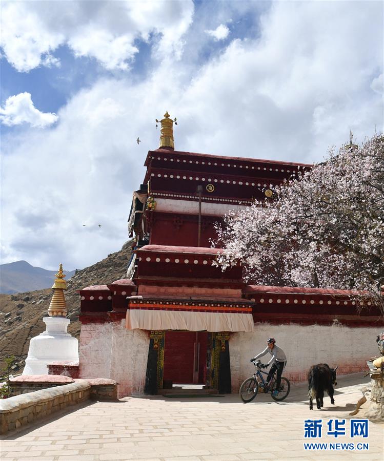 一名自行车骑手经过帕崩岗一间庙堂(4月18日摄)。