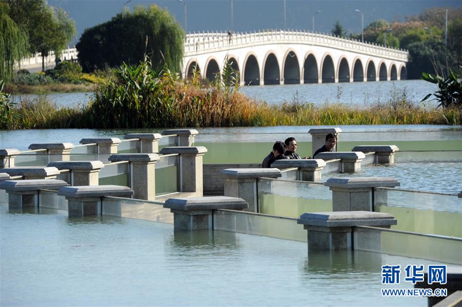 游人在徐州云龙湖珠山沉水走廊游览(2012年11月11日摄)。 新华社记者韩瑜庆摄