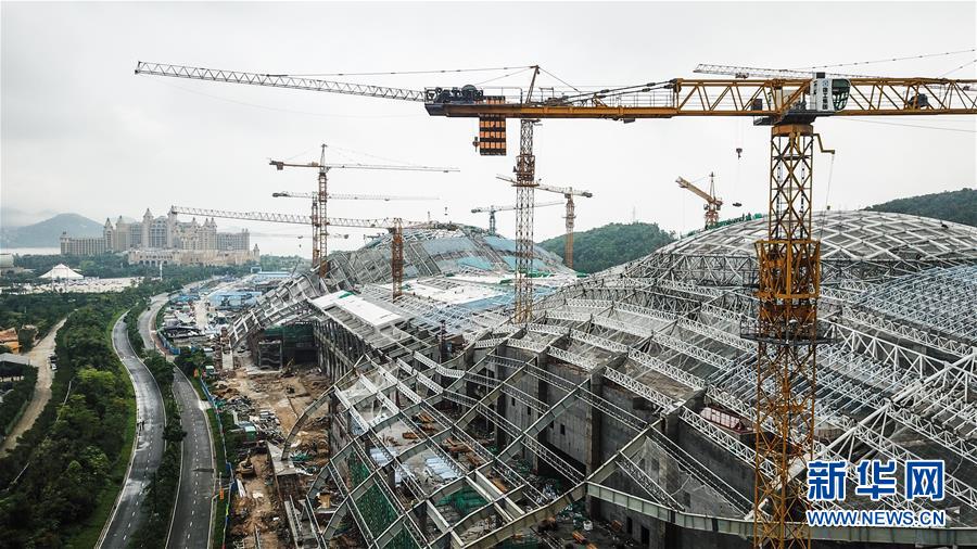 这是正在建设中的长隆海洋科学乐园(4月19日无人机拍摄)。近日,《横琴国际休闲旅游岛建设方案》发布。根据该方案,横琴国际休闲旅游岛的发展定位是促进澳门经济适度多元发展新载体、国际一流休闲旅游基地、国家全域旅游示范区。位于横琴的珠海长隆海洋度假区年接待游客人数已经突破千万,目前正在建设的长隆海洋科学乐园、长隆海洋科学酒店和长隆剧院等都计划在今年内建成开放。新华社记者 刘大伟 摄