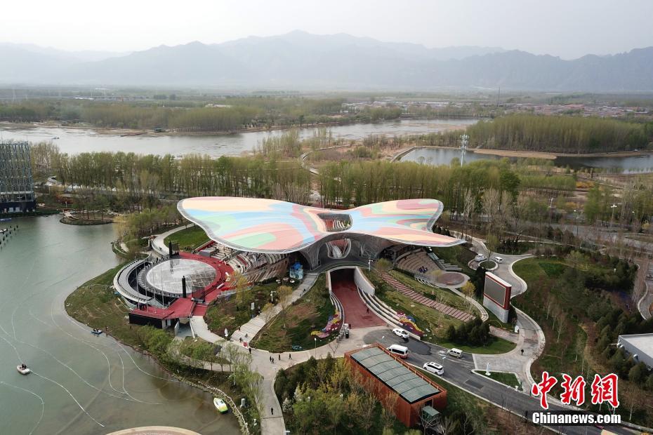 4月19日,无人机拍摄的北京世园会妫汭剧场。2019年中国北京世界园艺博览会(简称北京世园会)将于4月29日至10月7日在北京延庆举行。本届世园会将有约110个国家和国际组织、120多个非官方参展方参展。中新社记者 韩海丹 摄
